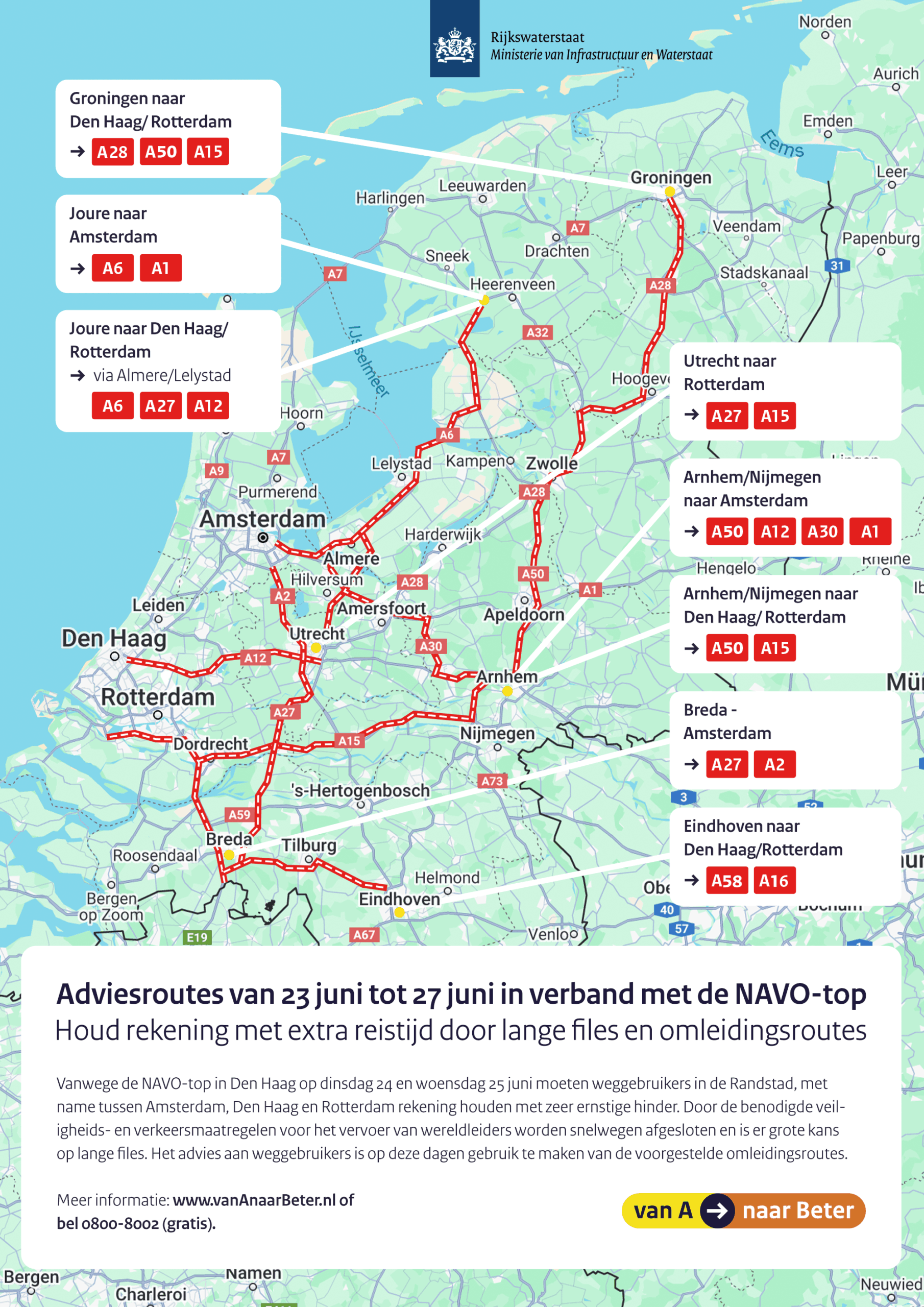 De locatie is bereikbaar met zowel het OV als de auto. Houd rekening met langere reistijd en omleidingen in de Randstad vanwege de NAVO-top in Den Haag. Kom daarom zo mogelijk met de trein. Voor wegverkeer adviseert de overheid verschillende alternatieve routes.
