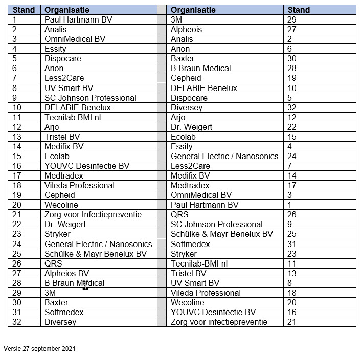 Overzicht standhouders (alpha en nummer)